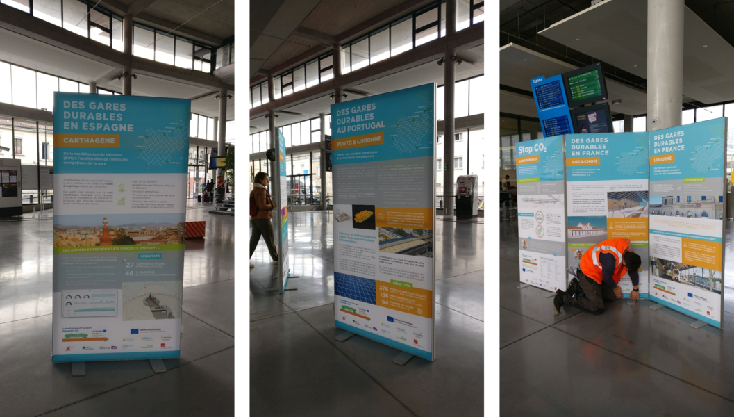 Primero fue Bordeaux St Jean, la gran estación de Aquitania en Francia, posteriormente las estaciones de autobuses de Santander, Torrelavega, Cartagena y Santa Pola en España y las mayores estaciones portuguesas tales como Entrecampos Lisboa, Porto Sao Bento y la Terminal de Autobuses de Campo 24 de Agosto también en Oporto. Decenas de miles de personas en el espacio Sudoe tienen la posibilidad de acceder diariamente a nuestra exposición para conocer los resultados del proyecto y tomar conciencia de la importancia de reducir el consumo energético.